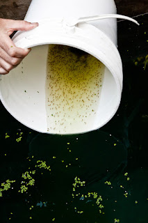 Here are some shots from Kari as we brought the fish to their new home (our former cistern). The kids and I decided to go for our first and only "swim" in the well since the water was as clean as it was ever going to get. That water is cold down in the ground.